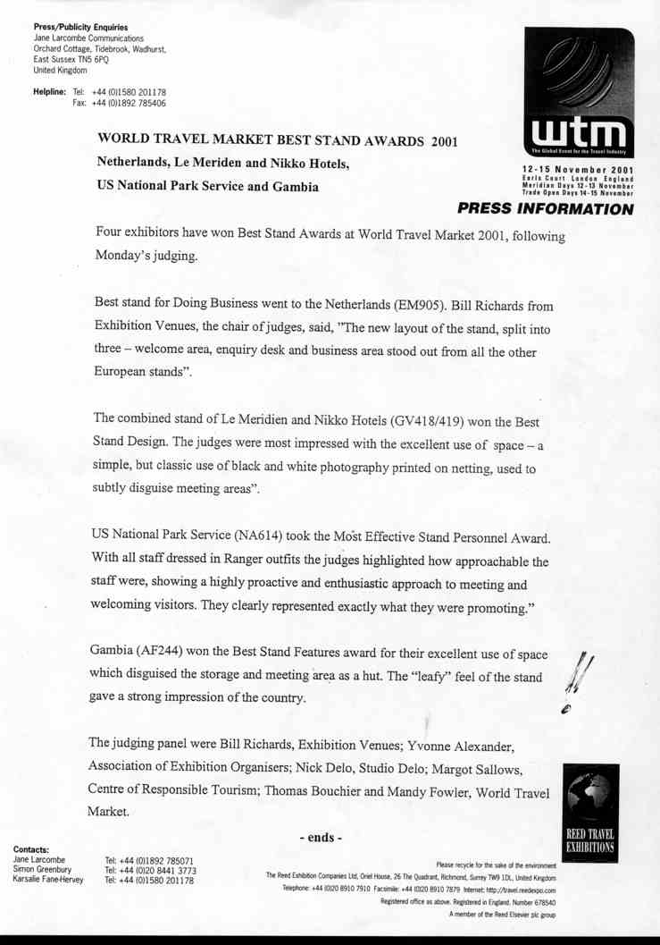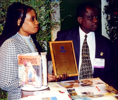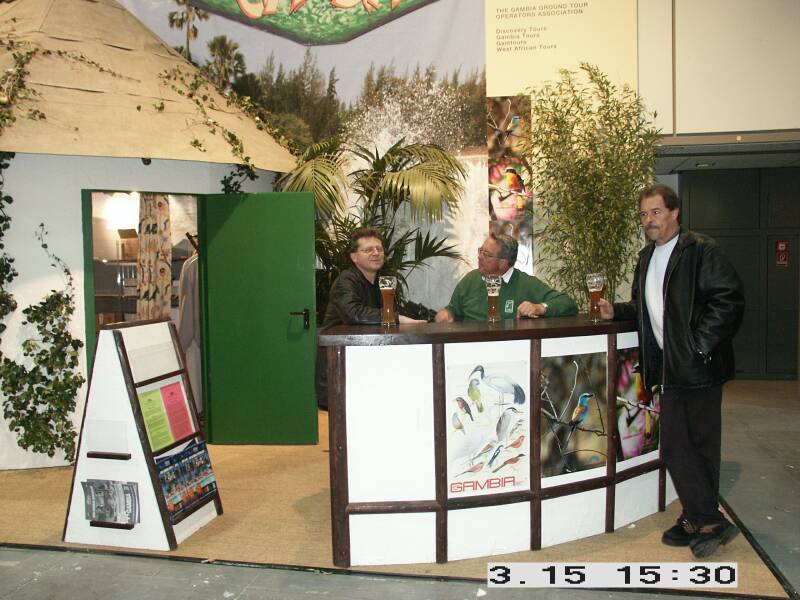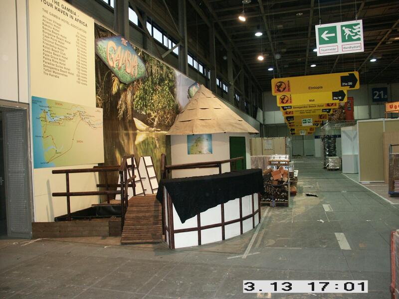 für den Stand GAMBIA (ist ein Miniland umzingelt vom Senegal an der Westküste Afrikas) auf der Messe WTM 2001(World Travel Market) im Londoner Earl´s Court. Auf dem Foto